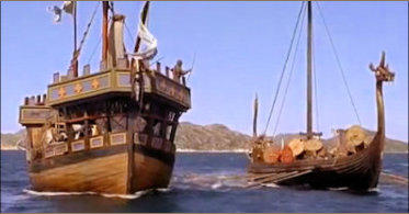 the galley has the advantage of height over the longship.